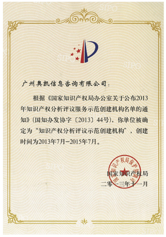 3. 获国家“知识产权剖析评议服务树模建设机构”
