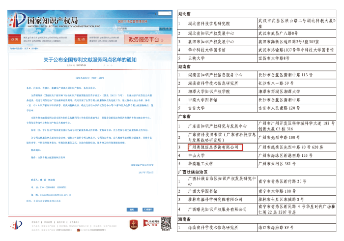 • 天下专利文献服务网点名单公示