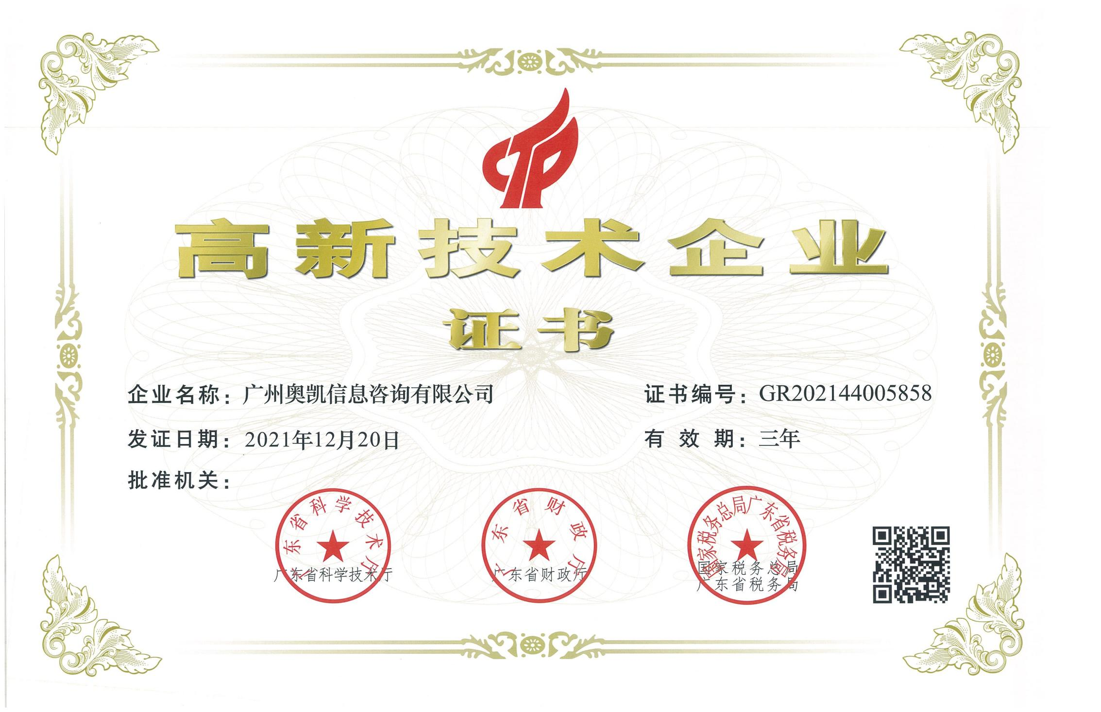 • 高新手艺企业证书